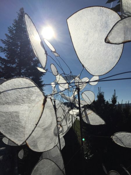 Das Vlies, das die Erde, die Pflanzen wärmt und schützt, inspiriert sie. Näht Draht hinein,