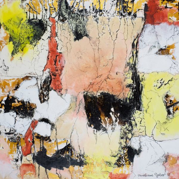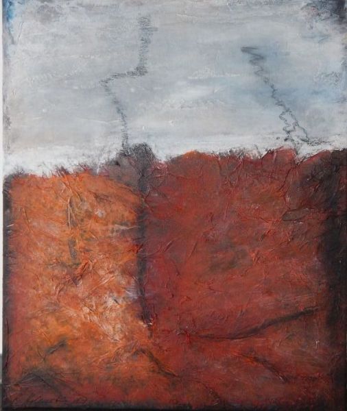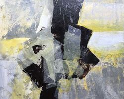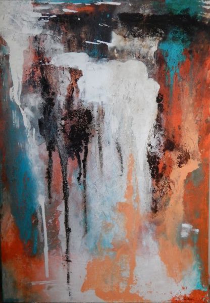 Techniken wie Acryl, Kreide, Asche, Papier, Kohle, Collagen, Schichtarbeiten und bin
