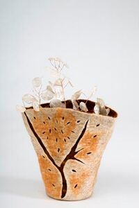 Nun gestalte ich den Filz zu einem dreidimensionalen Objekt. Die Möglichkeiten diese zu besticken, mit der Nähmaschine zu verzieren oder mit anderen Wollfasern zu ergänzen, sind grenzenlos. So sind meine Gefässe und die dreidimensionalen Bilder entstanden.