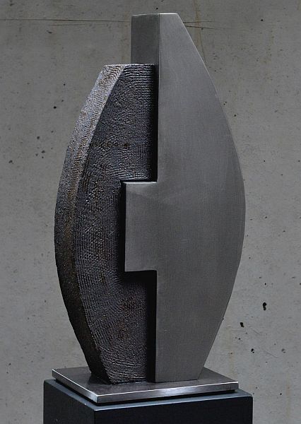 Als Eisenplastiker arbeitet Andreas Mantel mit Eisenblechen. Das widerspenstige Material bringt er zum Glühen und formt daraus kantige, abstrakte oder runde, amorphe Eisenkörper. Um die Spannung zu erhöhen setzt er Akzente mit Materialien wie Schiefer, Glas oder Keramik.