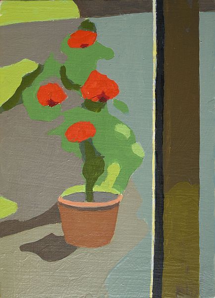 Ich arbeite nach der äusseren Anschauung und zeichne mir meist in kleinem Format auf, was mir im Alltag eine Bildidee gibt und mache mir Notizen dazu. Zuhause übertrage ich die Zeichnung auf eine grössere Leinwand und in letzter Zeit auch auf kleinere Formate auf Sperrholzplatten und male das Bild mit Ölfarben nach den Notizen und aus der Erinnerung.