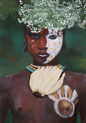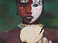 Vom Portrait zur freien Malerei bis hin zu ihren Objekten bringt Elisabeth Moers die unterschiedlichsten Ausrichtungen zusammen, immer mit dem Fokus auf die Farbe und deren Wirkung. Sei es mit den Ölportraits afrikanischer Frauen, die sich mit Pigment-, Erdfarben und Blumen schmücken, sei es mit den ernsten Gesichtern einer Schulklasse von 1908, die sie mit Farben aufheitert, oder mit Naturbildern, die sie mit angefügten Farbfeldern kommentiert.