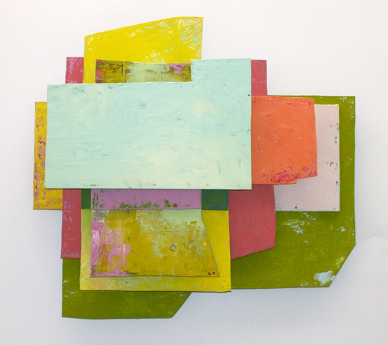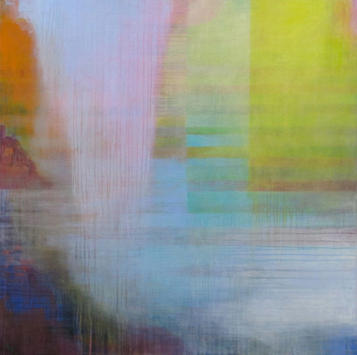 In einer weiteren freien Arbeitsgruppe intuitiver Bilder, wird das Wort, das sie zuerst auf die weisse Leinwand schreibt, in vielen Schichten übermalt, sodass schlussendlich nur noch die Kraft des Wortes in Farbe stehen bleibt. Auch ihre Objekte sind farbintensiv und verspielt und zeugen wie alle Arbeiten von Harmonie, Balance und Konzentration.