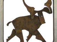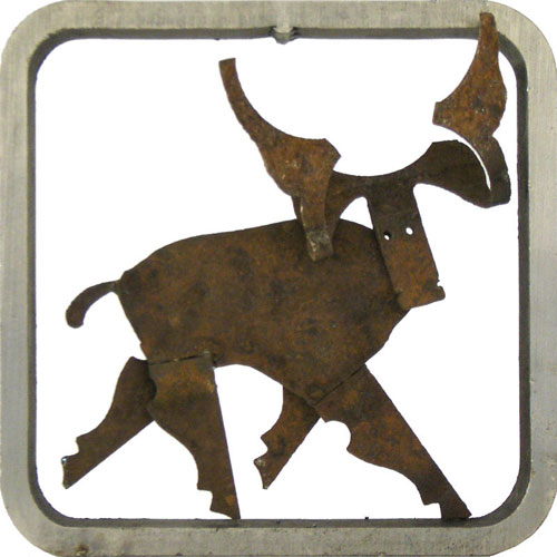 Dem Eisen - sowohl bei der Gestaltung von Großplastiken als auch der kleineren Arbeiten. Seine unverwechselbaren Eisenbilder und Plastiken bestehen meist aus rostigen Fundstücken von Schrottplätzen dieser Welt und aus blanken Eisenblechen.