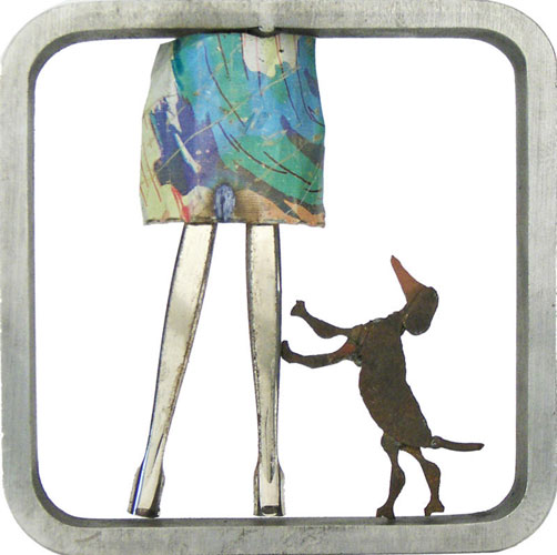 Mit subtiler Poesie führt uns Fehlmann vor, wie ausrangierte Alltagssachen zu kreativen Gebilden voller Assoziationen taugen. Ein unerschöpflicher Ideenreichtum steckt in den neusten Arbeiten, wo sich Fehlmann nach langer Zeit erstmals mit dem kleinen Format intensiv beschäftigt. Es gelingt ihm bei den Miniaturen die ganze Kraft der großen Eisenbilder auf kleinster Fläche zu verdichten und jedes einzelne Bild erzählt wiederum eine eigene Geschichte. Die Leichtigkeit im Umgang mit dem doch so sperrigen Material kann man nicht nur in den Miniaturen sondern auch in der Großplastik vor der Villa Liebegg bestaunen, bei der sich die Doppelfigur „Dialogo“ mit dem Wind, elegant wie im Gespräch wippend, leicht bewegt.