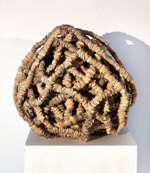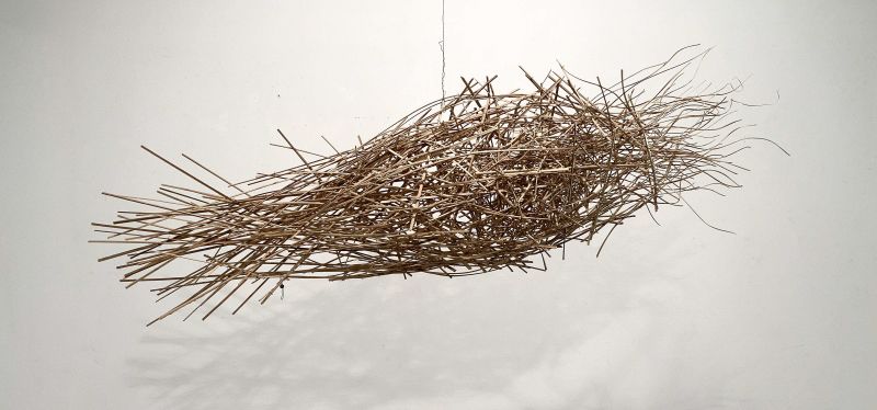 Gerhard Catrina verwendet gerne gebrauchtes oder zu entsorgendes Material, wie z. B. Pistazienschalen, Muschelschalen oder gebrauchte Doppelmeter für seine Objekte. Und mit feinsten Eisen- oder Kupferdrähten entstehen kleine oder auch sehr grosse Gespinste.