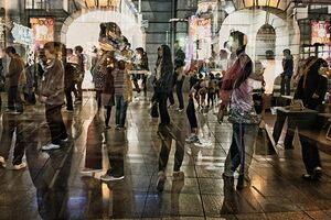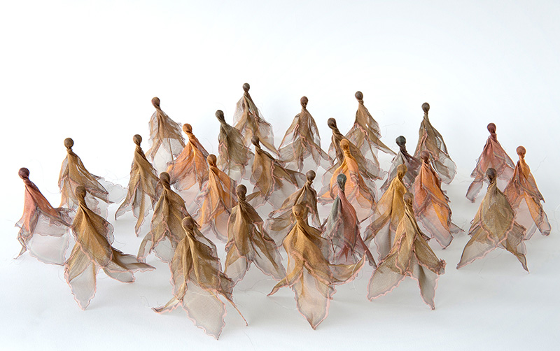 Seit 2006 beschäftigt sich Ursula Gerber-Senger intensiv mit dem Thema des „Unterwegs-Seins“. Bei der Figurengruppe „Time Flies“ unterstreicht die optische Leichtigkeit des Materials den Charakter des flüchtig-fragilen Moments und steht symbolhaft für das moderne Nomadentum. Ihre neuesten Arbeiten, digitale Fotocollagen, halten das Kommen und Gehen von Menschen in verschiedenen Städten fest. Durch die Überblendung mehrerer Aufnahmen scheinen sich die Gestalten aufzulösen. Den Grundrhythmus ihres Schaffens bildet denn auch das Spannungsverhältnis zwischen Alleinsein und Gruppierung.